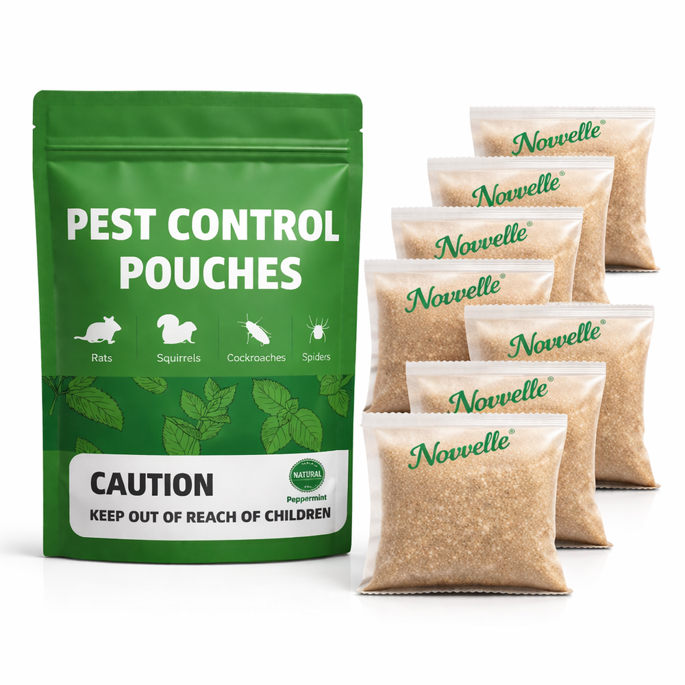 One Novvelle pouch replaces mouse traps, spider spray, moth balls, AND roach bait — no cleanup, no chemicals, no $400 exterminator visits.